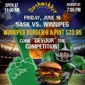 Saskatchewan Roughriders vs Winnipeg - Calgary Burger and a Pint Special